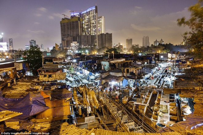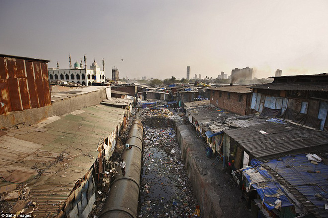 Đây là hình ảnh khu ở chuột Dharavi – khu ổ chuột lớn nhất ở Mumbai, Ấn Độ. Cuộc sống ở đây dường như không có bất kì mối liên quan nào với những cung điện, đền thờ sang trọng ở phía xa, ngoại trừ việc vô tình được hiện diện trong cùng một bức ảnh.