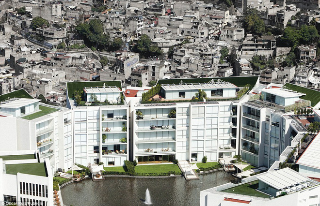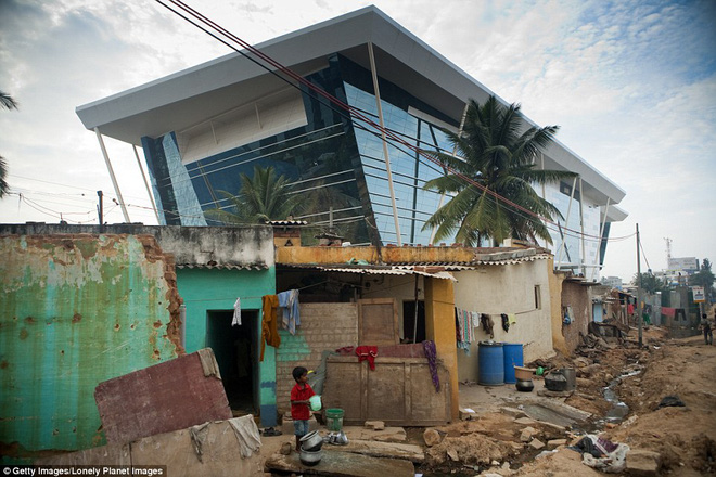 Khu căn hộ sang trọng của tầng lớp giàu có này đã gần như che đậy hoàn toàn một thế giới đối lập khác - những khu nhà ọp ẹp, xiêu vẹo nằm ở ngay phía sau.
