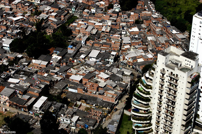 Paraisopolis – khu ổ chuột nổi tiếng với khoảng 60.000 cư dân nằm ngay bên cạnh một khu căn hộ cao cấp với đầy đủ tiện nghi và bể bơi hiện đại ở khu dân cư Morumbi, thành phố Sao Paulo, Nam Mỹ.
